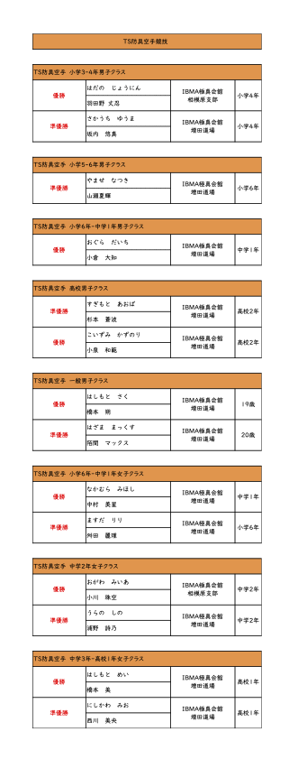 IBMA極真会館 入賞者記録