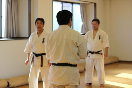 2016年2月20日(土)から21日(日)にかけて、修行年数の長い黒帯対象の特別昇段合宿を実施しました(平野3段、荻野弐段、福岡弐段、高澤初段)。