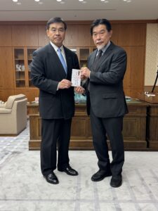 ↓石川県知事の馳知事に直接挨拶に伺いました。